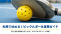 北海道札幌でピックルボールを体験したい初心者の方へ、おすすめの施設や人気サークル情報をご紹介します。手ぶらで参加できるスクールや、白石区、厚別区などの最新コート情報も満載です。この記事を読んで札幌でのピックルボール体験をスムーズに始める準備をしましょう!