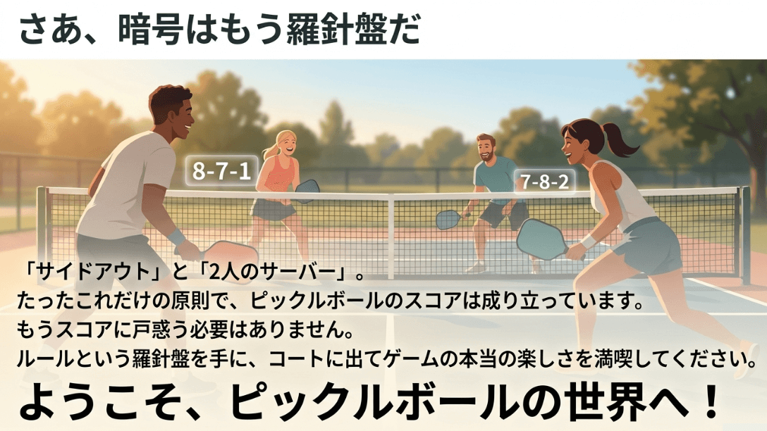あなたが正しいルールとカウントをマスターして、笑顔あふれるピックルボールライフを送れるよう、心から応援しています!