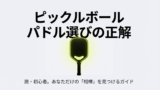 特に初心者の方向けのパドル選びのコツや注意点については、「ピックルボールラケットの違いは?初心者にもおすすめの選び方ガイド」の記事で解説してますので、よかったらこちらも参考にしてください。