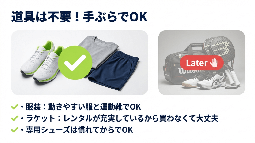 飲み物とタオル、そしてシューズさえあれば、あとは笑顔でコートに入るだけです。あなたの健康的なピックルボールライフはまさにそこから始まるでしょう!