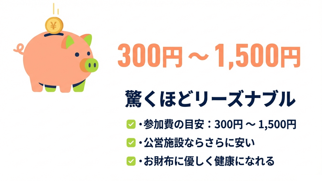 参加費も会場費の分担という形で500円〜1,500円程度に設定されていることが多く、週に何度も通いたいアクティブな方にとっては、お財布に優しい最高の環境です。