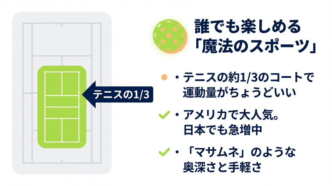 ピックルボールは年齢や体力を問わず、パドルを握ったその日から笑顔になれる稀有なスポーツです。もしあなたが日々の運動不足を解消したい、新しいコミュニティで友人を作りたい、あるいは世界的なトレンドを肌で感じたいと思っているなら、今すぐ一歩踏み出す価値があるでしょう。
