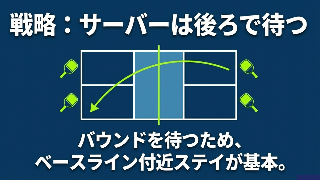 一方でレシーバー側には、リターンを打った後にネット際(キッチンライン)へ進出するための時間的・空間的な猶予が与えられるのです。